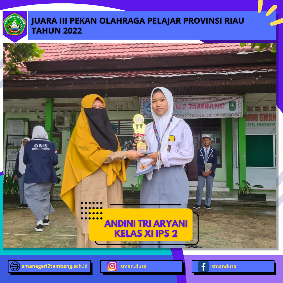 Salah satu prestasi gemilang diraih oleh siswi SMA Negeri 2 Tambang dalam rangka pekan olahraga pelajar provinsi Riau cabang pencak silat. Siswi ini duduk di kelas XI IPS 2 bernama Andini Tri Aryani, dimana siswi ini sebelum menghadapi pekan olahraga ini berlatih keras yang dibimbing langsung oleh salah satu guru PJOK SMAN 2 Tambang yaitu Pak ANGGI SEPTIADI, S.Pd, dan tidak luput pula disokong oleh guru PJOK lainnya.